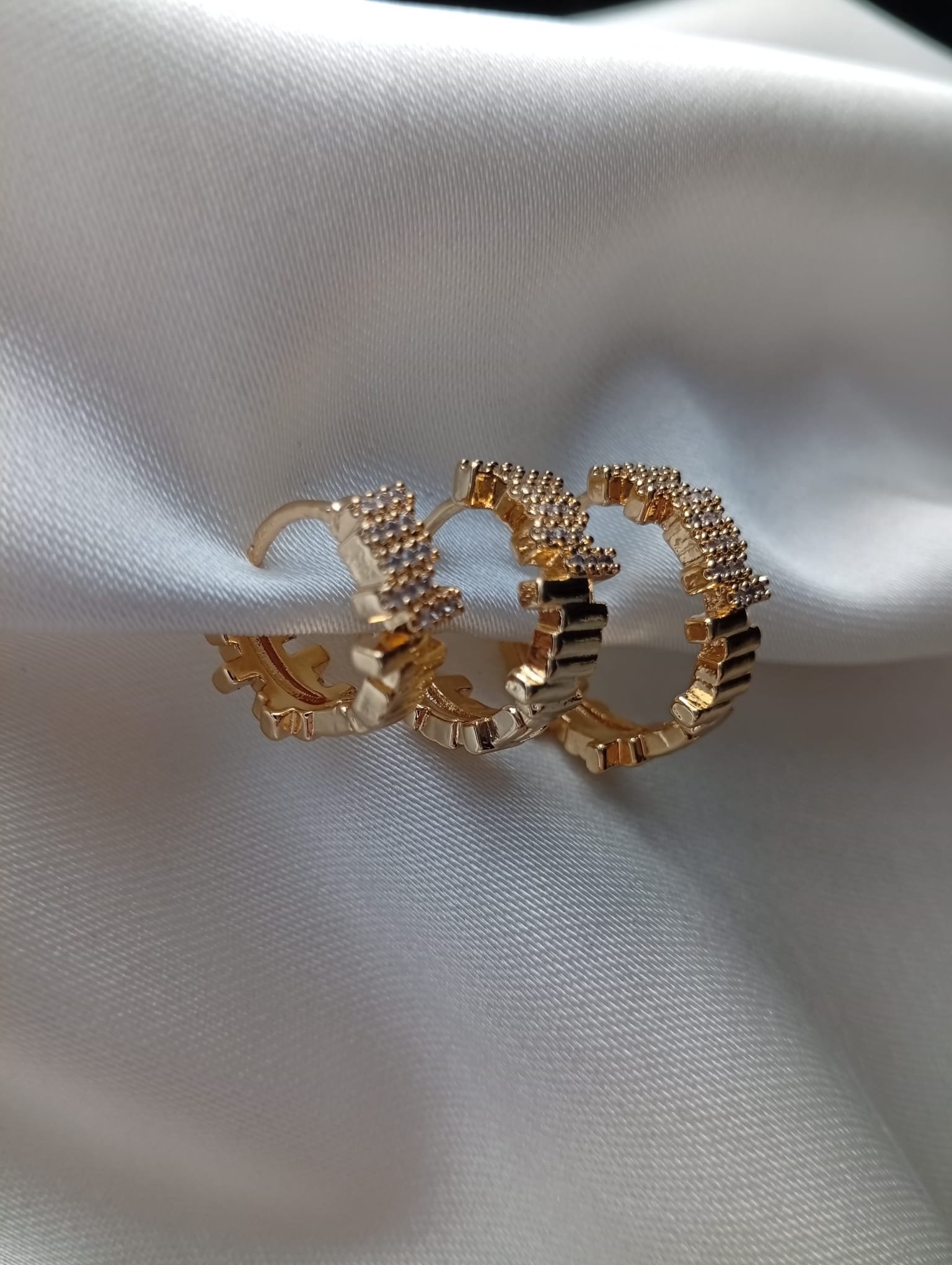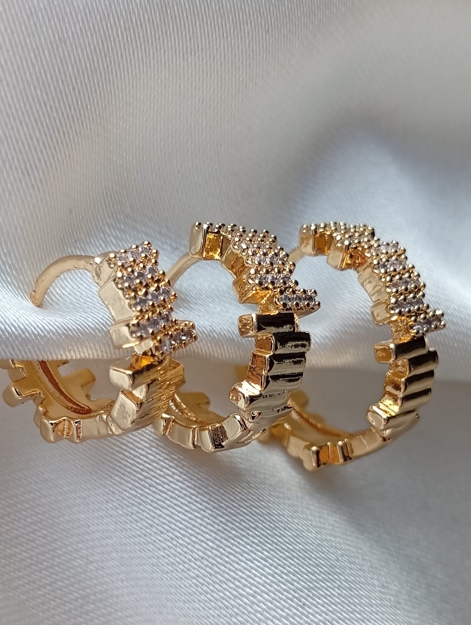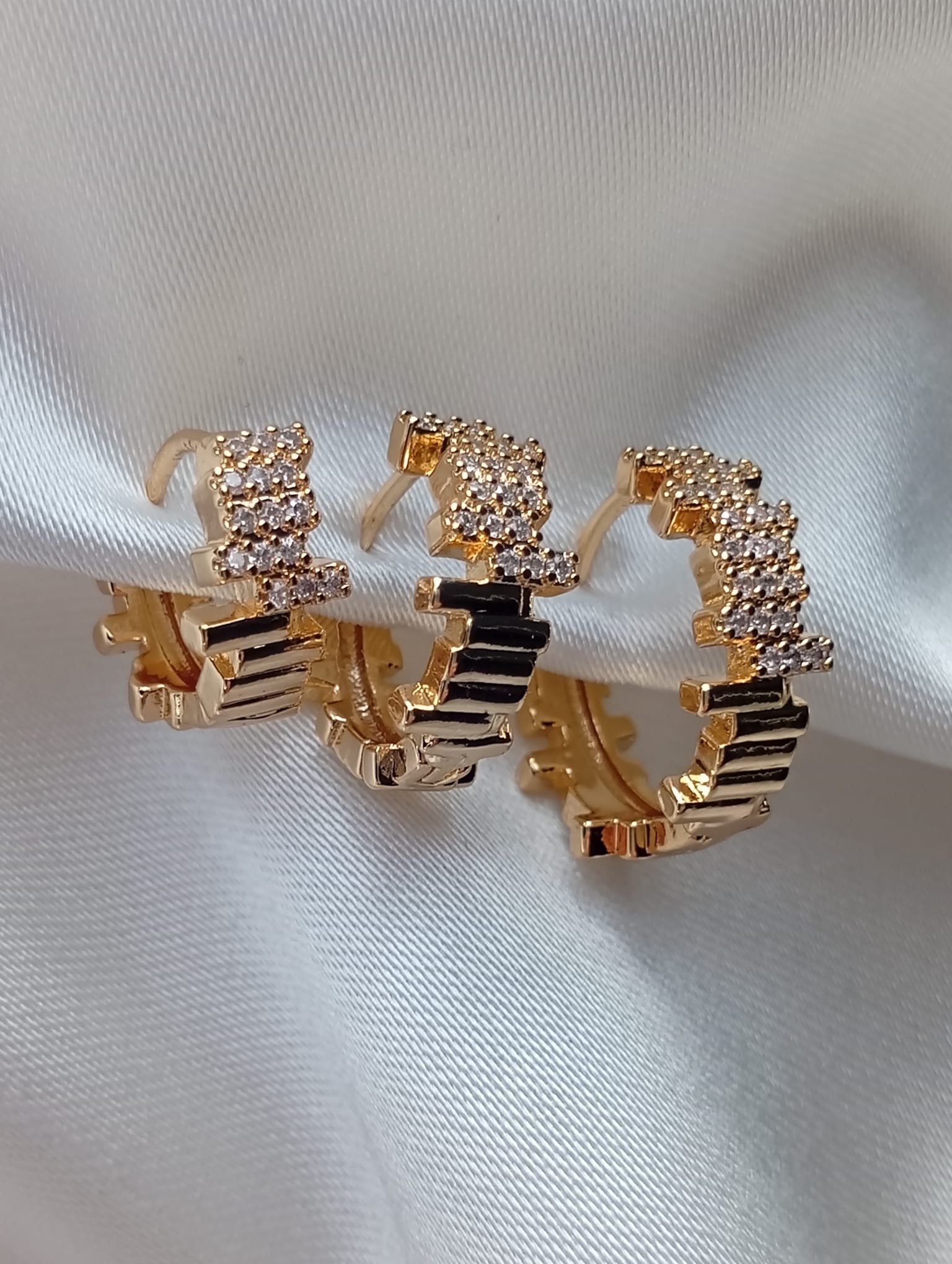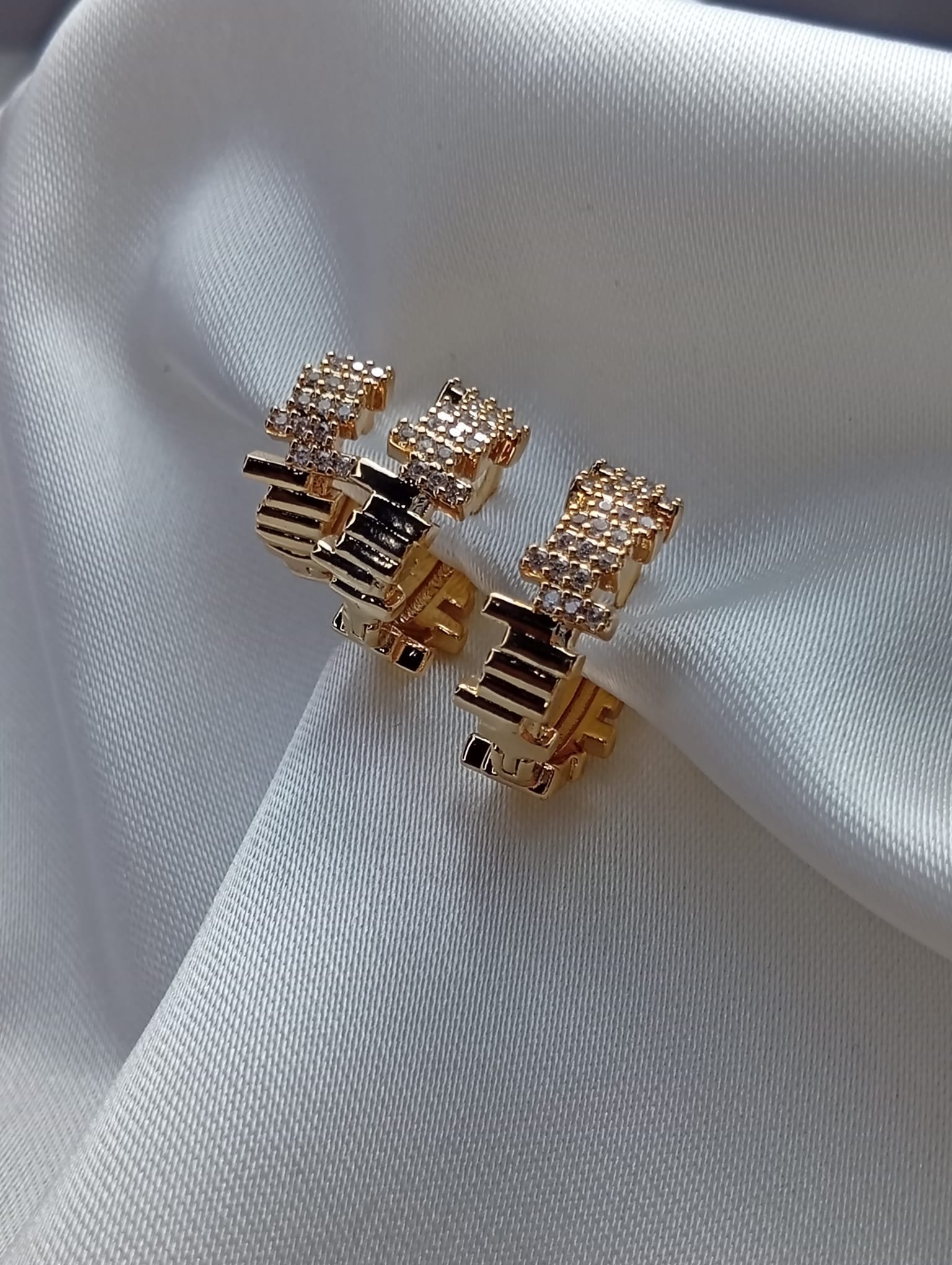 Cesur ve özgün bir stil sunan Taşlı Asimetrik Çoklu Küpe, altın kaplama tasarımında renkli taşlar ve asimetrik çoklu detaylarla göz kamaştırıyor.