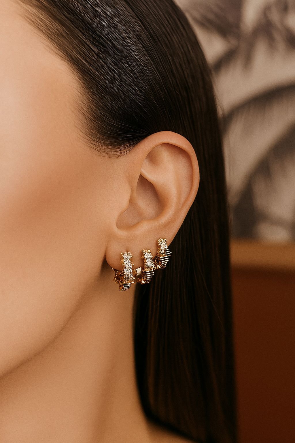 Taşlı Asimetrik Çoklu Küpe