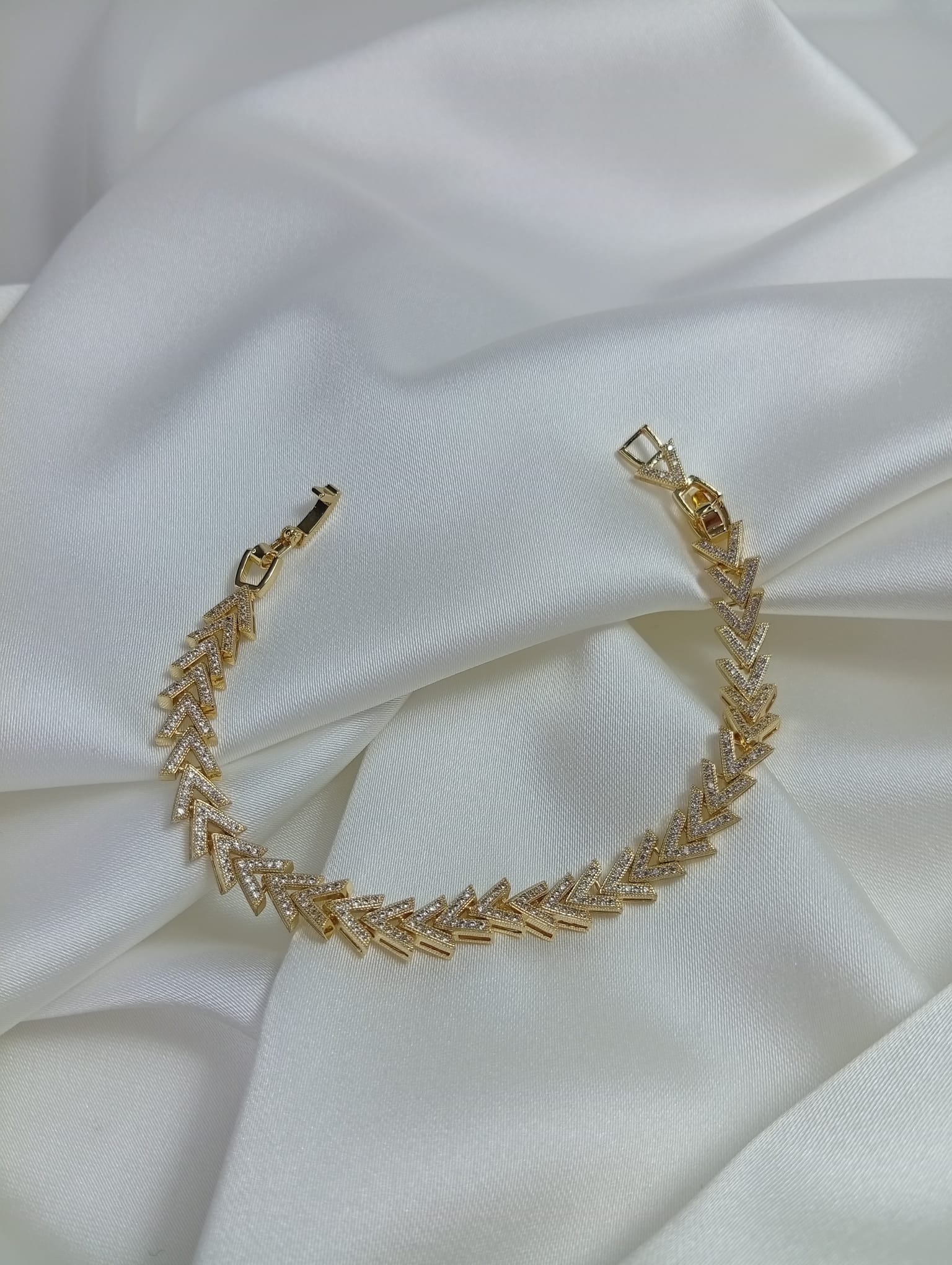 Altın ışıltısıyla parlayan bu büyüleyici bileklik, elmas dokunuşlarıyla adeta bir sanat eseri! Zarif tasarımı, her anı özel kılıyor; gece davetlerinden günlük şıklığa kadar her stile eşlik ediyor. Dayanıklılığı ve eşsiz çekiciliğiyle koleksiyonunuzun yıldızı olacak.